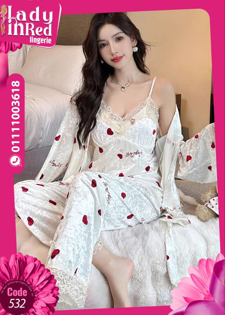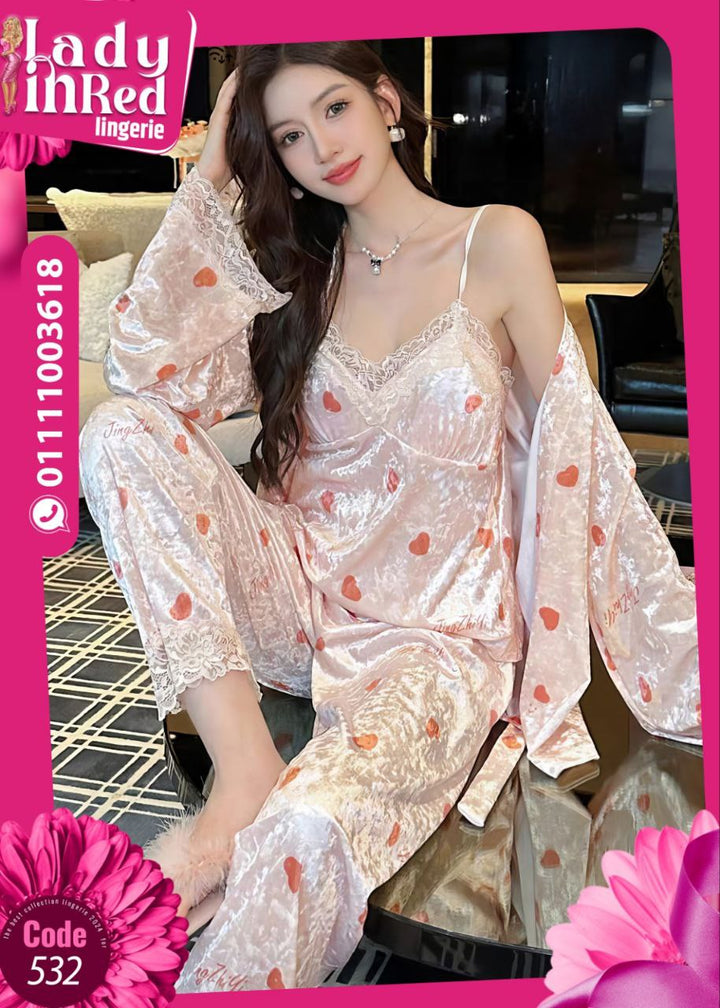 طقم قطيفة شتوي 3 قطع – خامة ناعمة مطرزة بقلوب | CODE 532