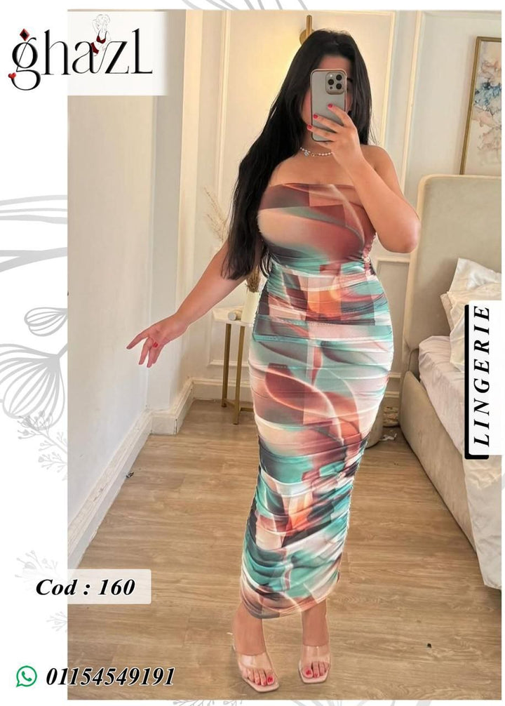 فستان لانجري طويل سترب كت – قماشة ستريتش تشكّل الجسم | CODE 160