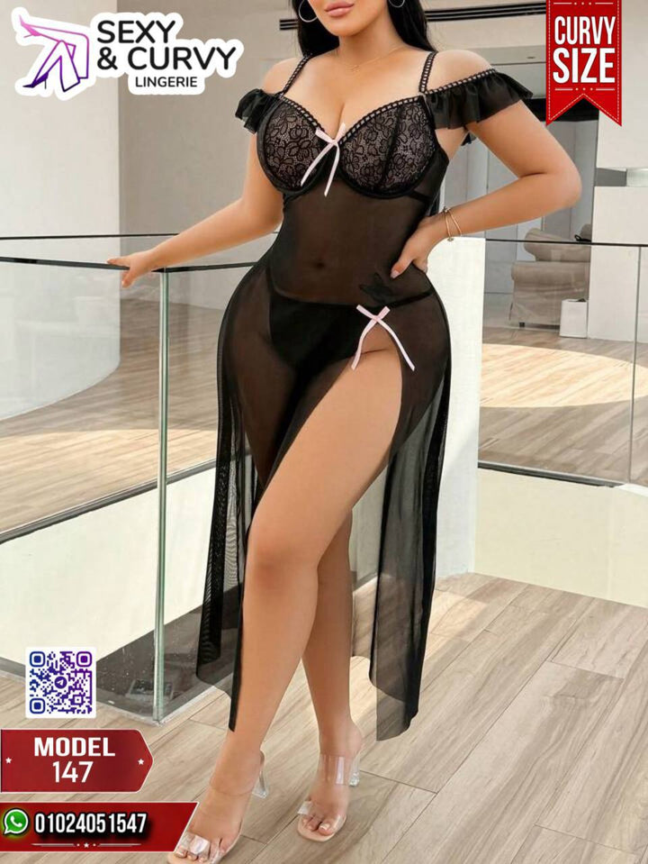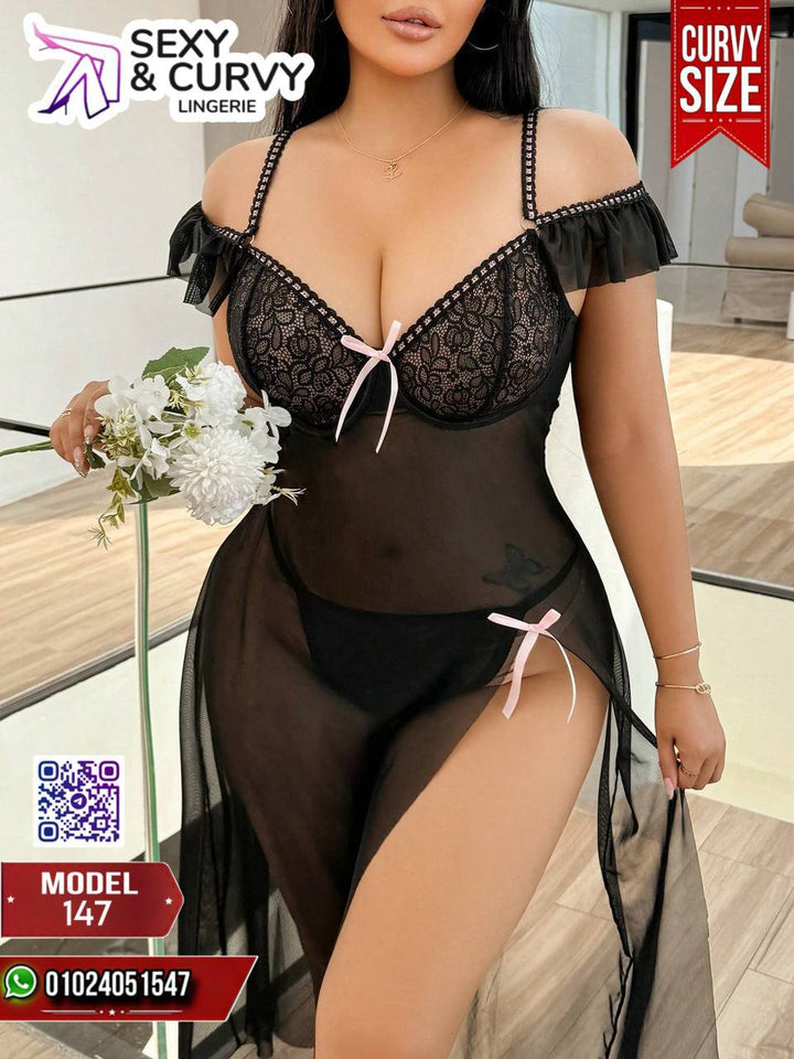 – فستان لانجري كيرفي دانتيل وشيفون – Model 147 BIG SIZE