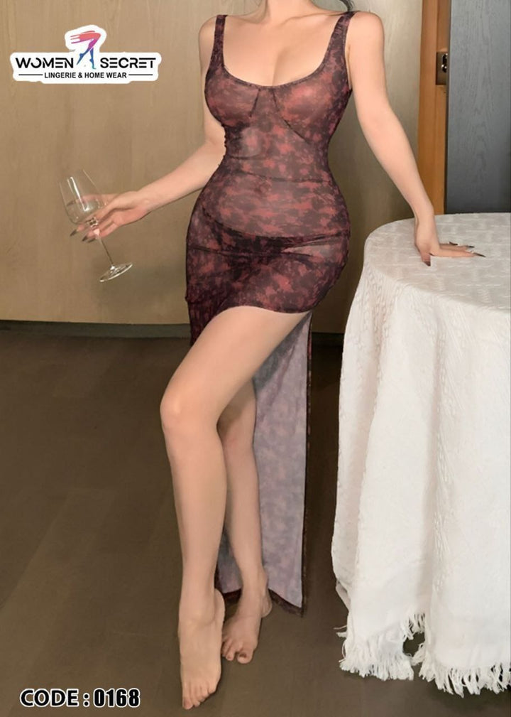 لانجري شيفون طويل شفاف – قصة أنثوية مع فتحة جانبية | CODE 0168