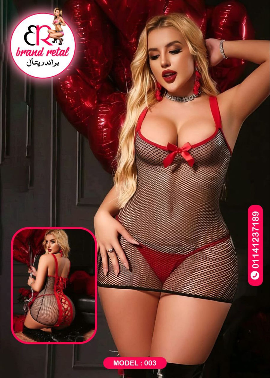 🔥 لانجري شبك مثير بفيونكة حمراء – كود 003