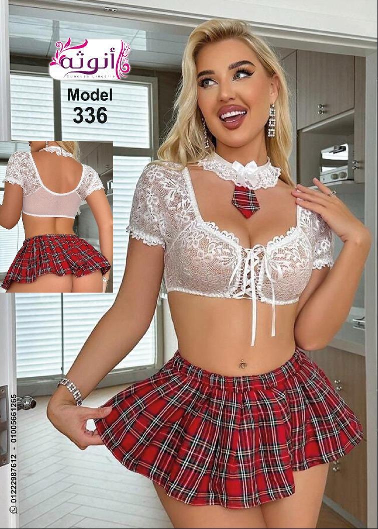 Sexy Schoolgirl Lingerie Set with Lace Top & Plaid Mini Skirt – Lingerie 336