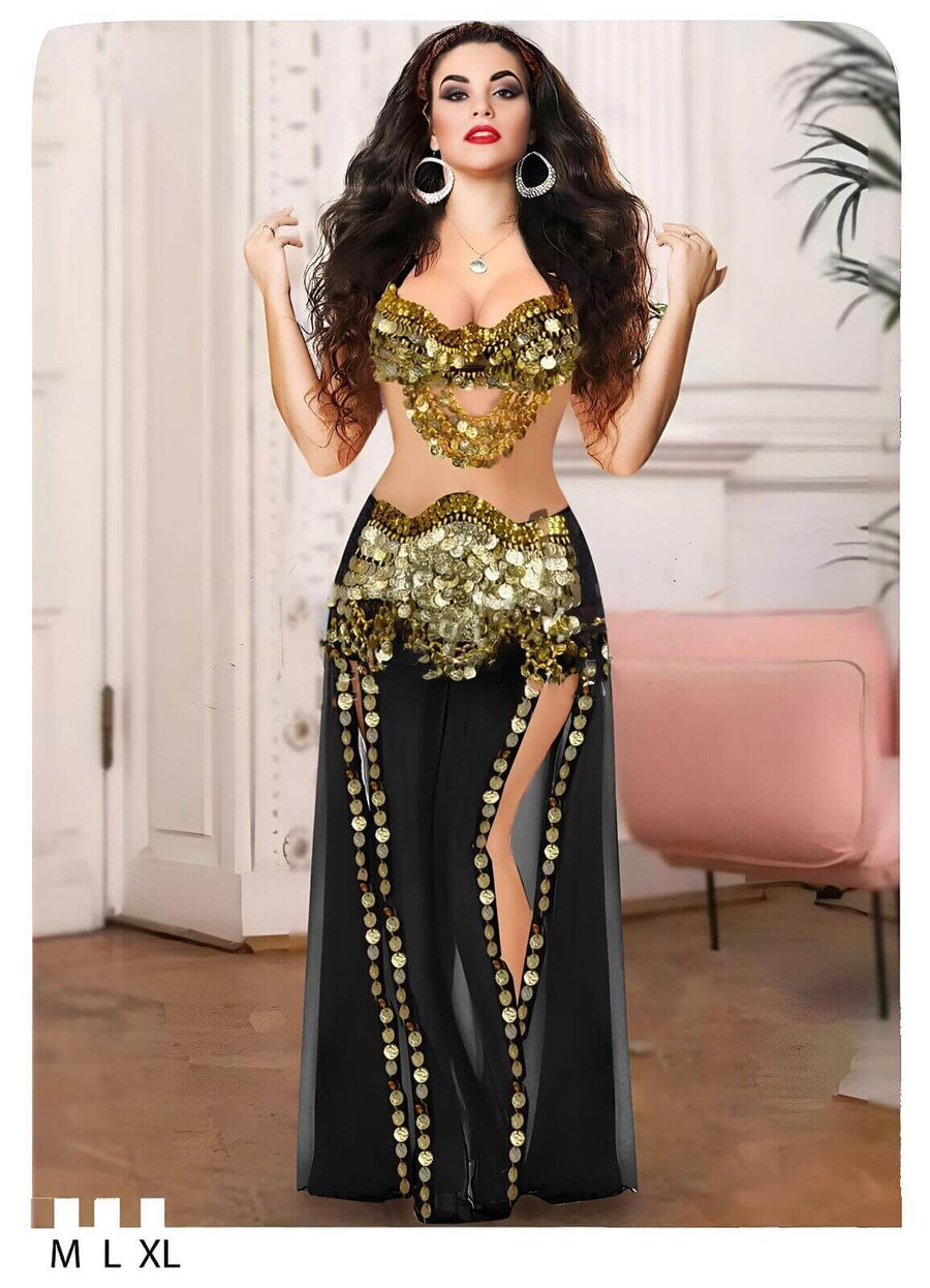 فستان رقص شرقي مصري لامع بالكامل مطرز بقطعتين من حمالة الصدر والتنورة