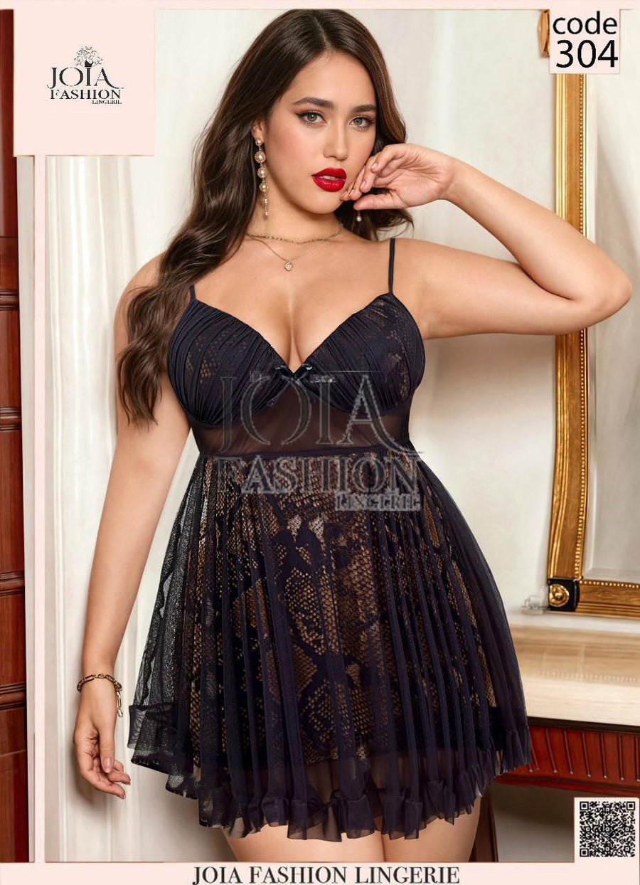 Turn heads with this stunning black lace babydoll, tailored for both elegance and allure. Designed with a flattering deep V neckline, soft padded cups, and adjustable straps, this piece highlights your curves with grace and confidence. The sheer mesh overlay features intricate lace detailing that adds a touch of sophistication, while the short flowy cut brings playful charm.