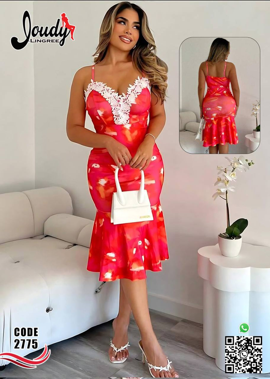 Red Floral Lace Night Dress – Elegant & Feminine Look