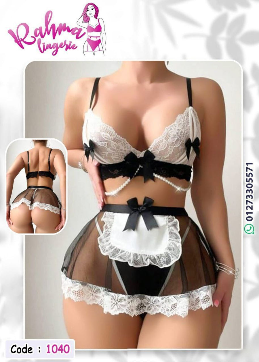 - Sexy Maid Lingerie Costume – Rahma Lingerie 1040 | Lace Bra & Apron Skirt Set